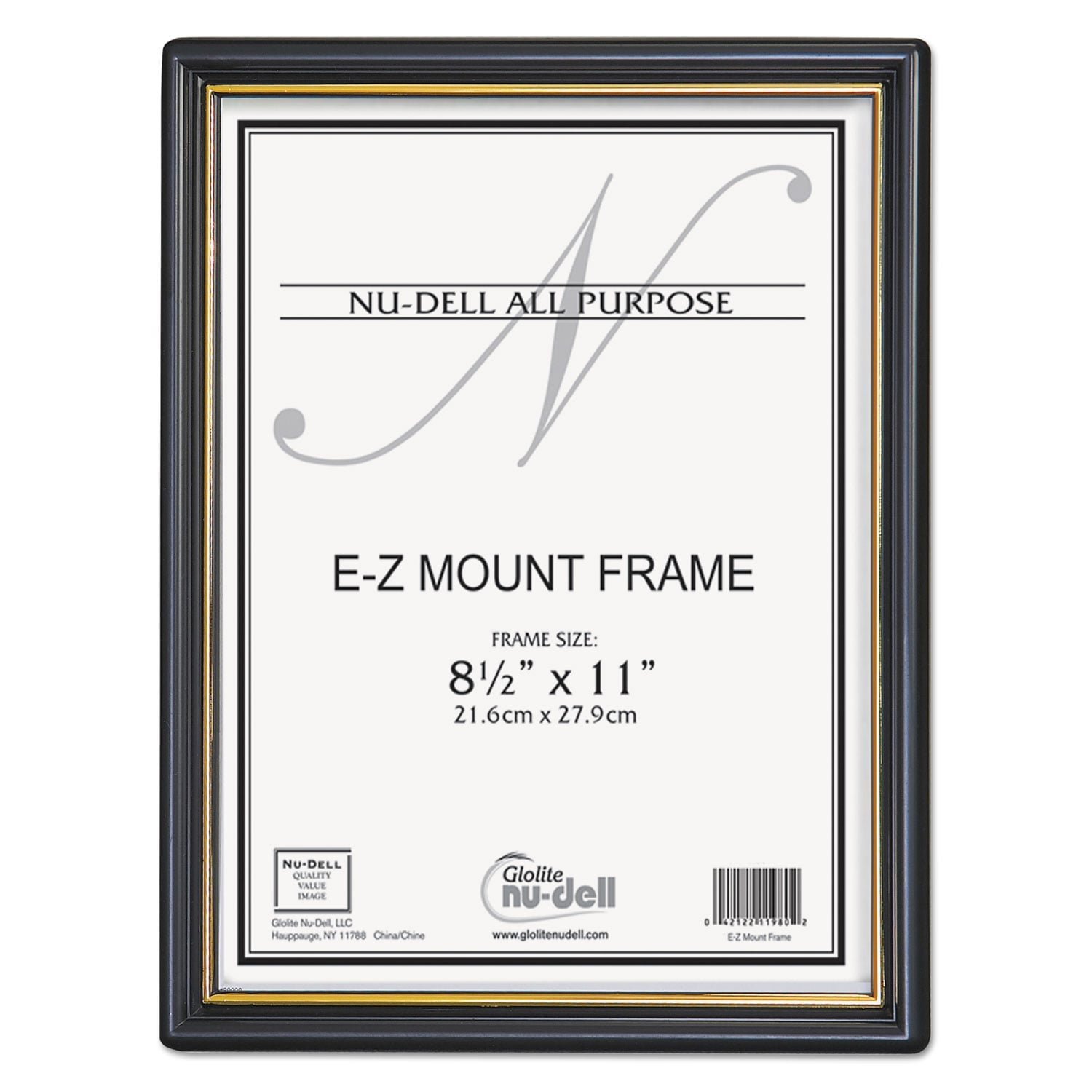 NuDell EZ Mount Document Frame with Trim Accent and Plastic Face, Plastic, 8.5 x 11 Insert, Black/Gold (11880)