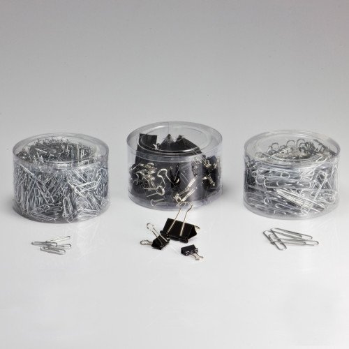 Clip value pack contains 200 giant paper clips, 750 small paper clips, 44 mini binder clips, 40 small binder clips and 6 medium binder clips to provide multiple ways to secure your documents. Paper clips are coated to slide on and off smoothly and prevent tearing your important papers. Metal binder clips maintain a strong, secure clasp to ensure every page is secured. Transparent, reusable storage containers keep your supplies easily visible to prevent unexpected depletion. More from the Manufacturer