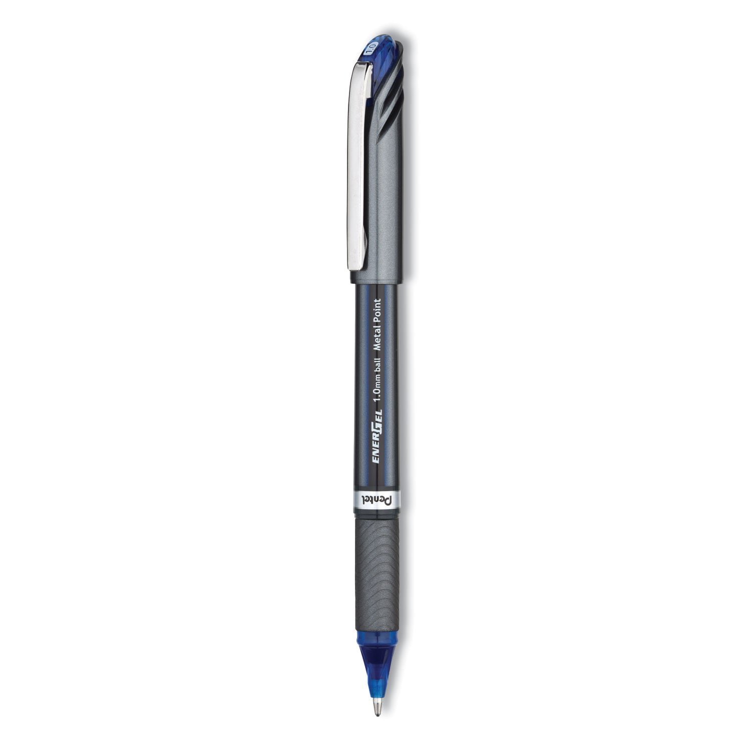 Pentel EnerGel NV Gel Pen, Stick, Bold 1 mm, Blue Ink, Gray/Blue Barrel, Dozen (BL30C)