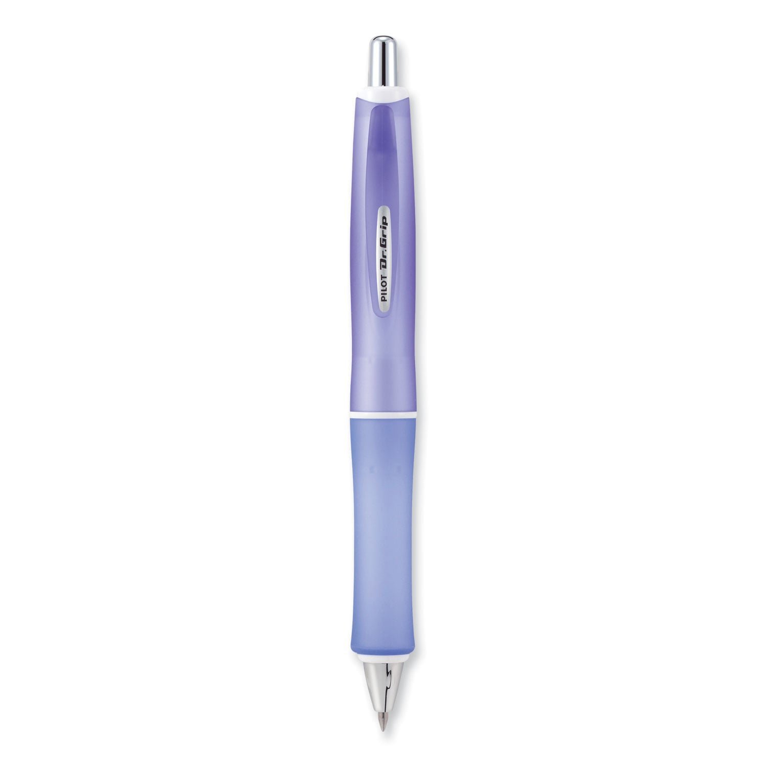 Indulge yourself with the smooth comfort of this delightfully designed Dr. Grip Frosted advanced ink pen. Light and airy pastel barrel colors. All come with black ink and the most popular medium point size. The ergonomic cushioned grip alleviates writing stress while the advanced ink glides on the page. Purple Barrel. Pen Sub-Brand & Product Family: Dr. Grip Frosted Advanced Ink; Pen Type: Ballpoint Pen; Pen Style: Retractable; Pen Tip Type: Conical.