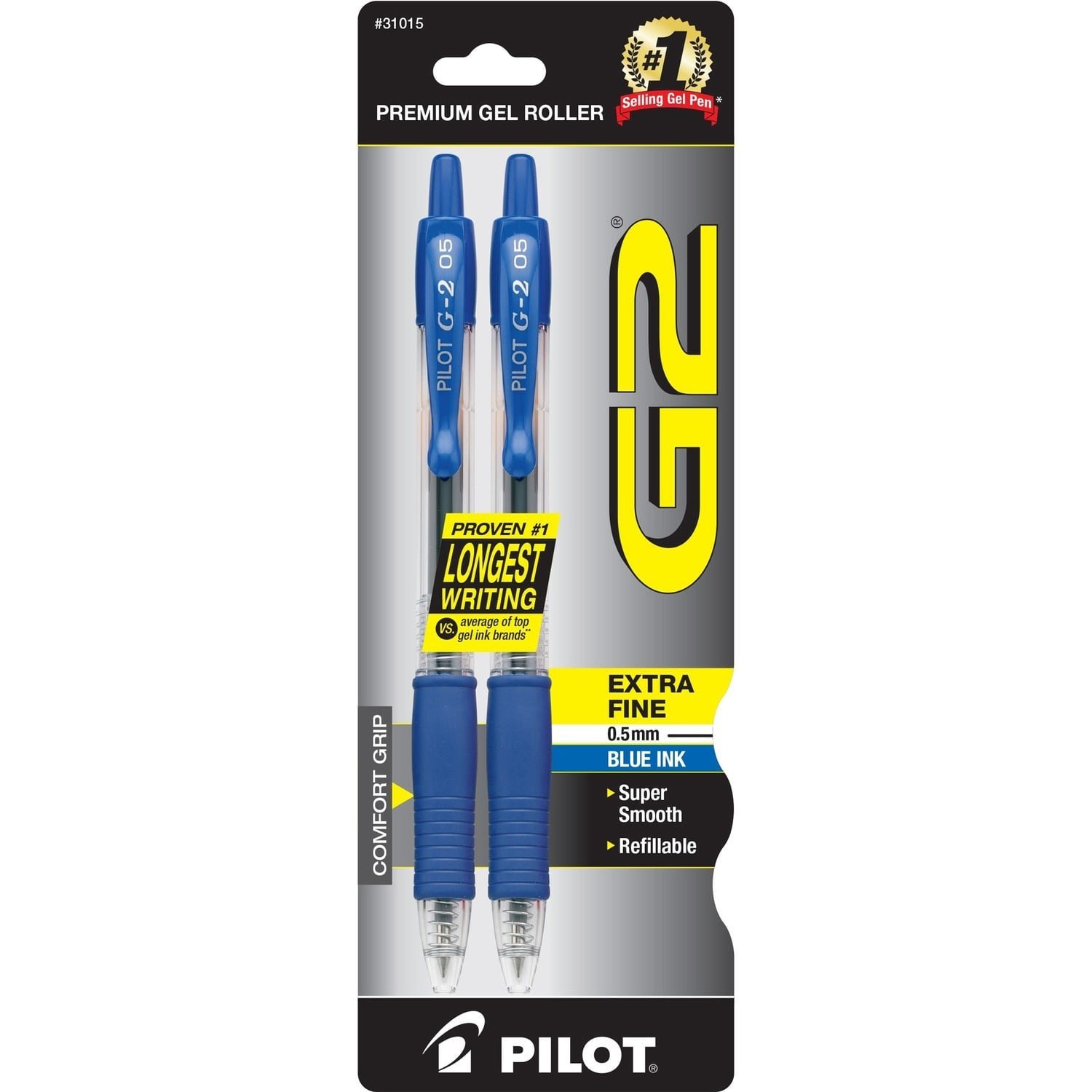 Pilot G2 Retractable Gel Ink Rollerball Pens 0.5 mm Fine Pen Point – Refillable – Retractable – Blue Ink – Gel-based – 2 / Pack (31015)