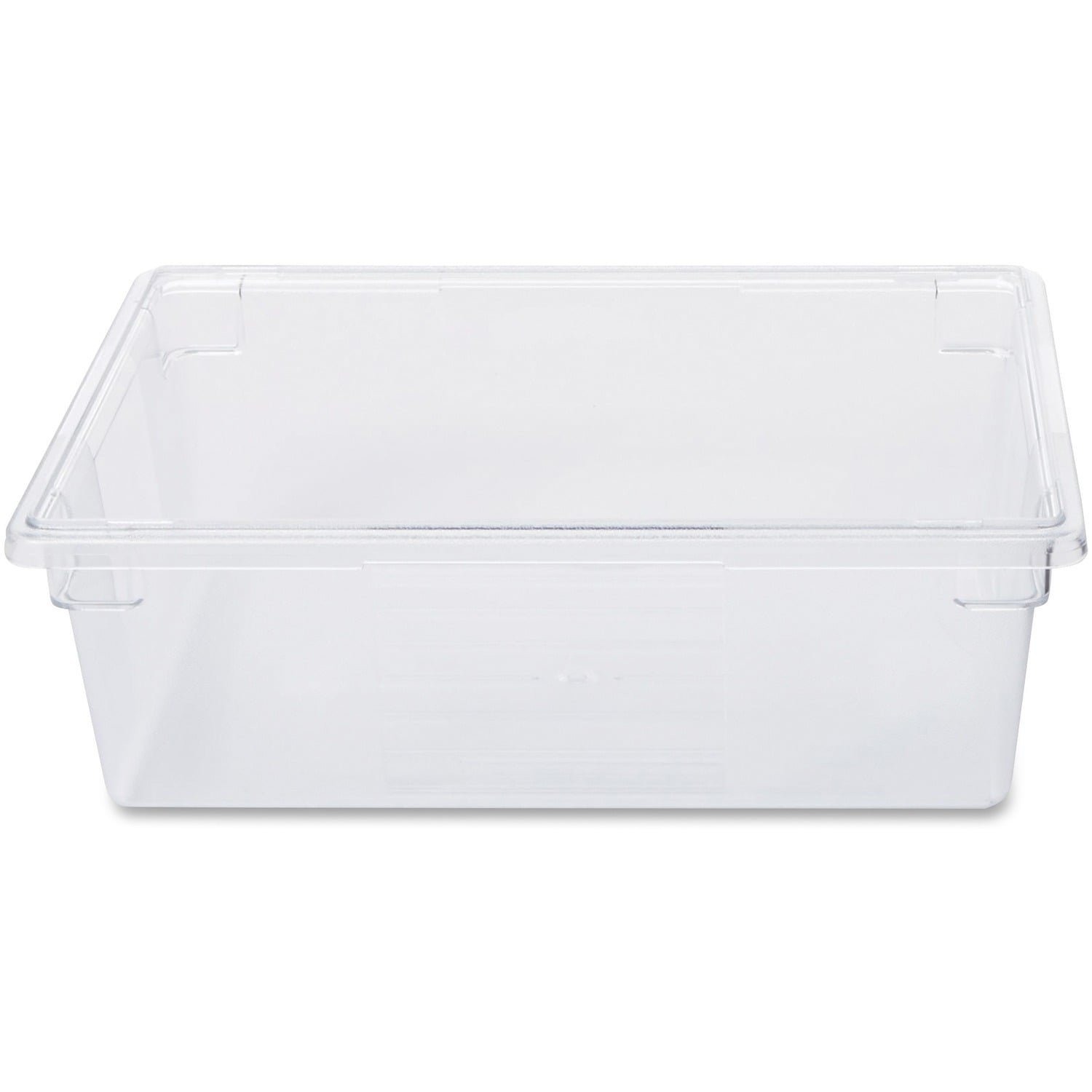 Organize your kitchen with this durable Food/Tote Box that is stackable, nestable and easy to clean. Food/tote box can reduce food spoilage costs. Date control panels on the clear box and lids (sold separately) allow easier inventory control to maintain safe food-handling practices. Labeling encourages proper food rotation. Box holds up to 12-1/2 gallons and accepts tight-fitting, snap-on lids to keep food fresh. Temperature range is from negative 50 degrees to 212 degrees Fahrenheit. Dishwasher-safe, freezer-safe box assists in complying with HACCP guidelines. It is made of FDA-compliant materials. Clear, break-resistant polycarbonate provides visibility, durability and stain-resistance. It is certified to NSF Std. No. 2 for safe food contact. Box stacks with other Rubbermaid Commercial Food/Tote Boxes and stays put with an interlocking ridge system.
