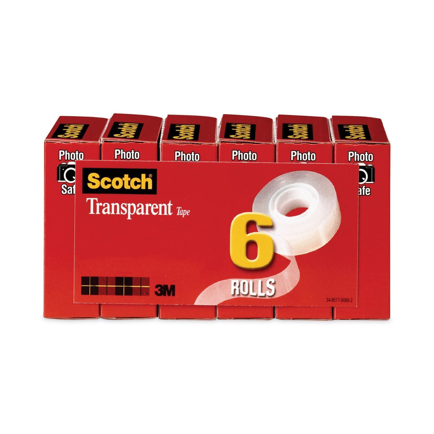 Scotch Transparent Tape, 1″ Core, 0.75″ x 36 yds, Transparent, 6/Pack (6006PK)