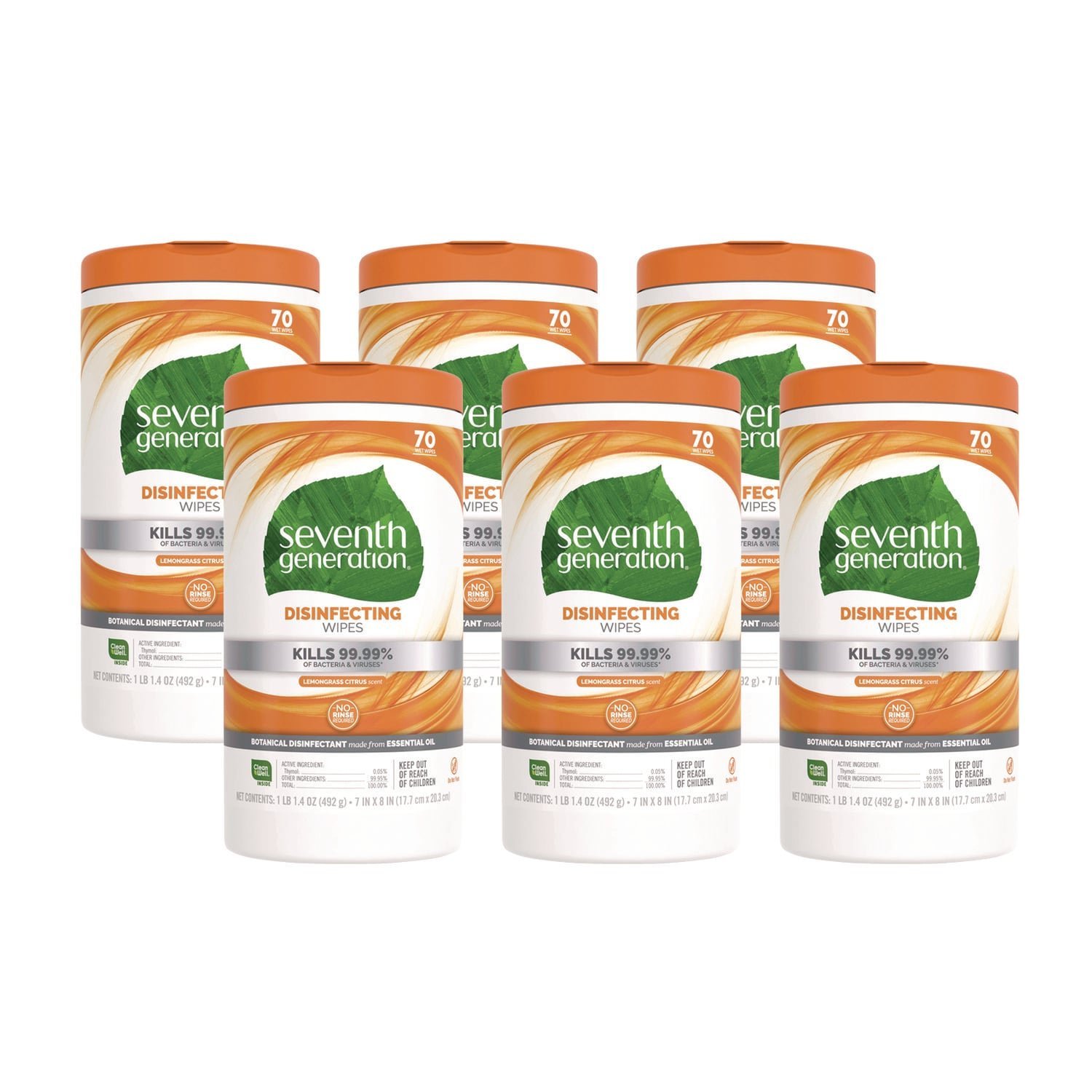 Seventh Generation Botanical Disinfecting Wipes, 7 x 8, Lemongrass Citrus, 70 Count, 6/Carton (22813CT)