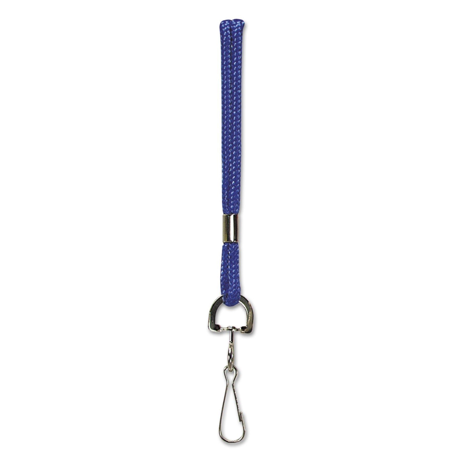 Durable lanyard is made from rugged, braided nylon so it wont break or fray over time. A lightweight metal J-hook on the end allows you to keep important pieces close to your chest for extra safety. It is great for holding badges or keys so youll always know where they are. Hang your whistle on it for playing sports, camping or security. The lanyard is a comfortable length for all day wear. Fastener Style: Hook; Lanyard Color(s): Blue; Length: 36″; Safety Breakaway Connector: No.