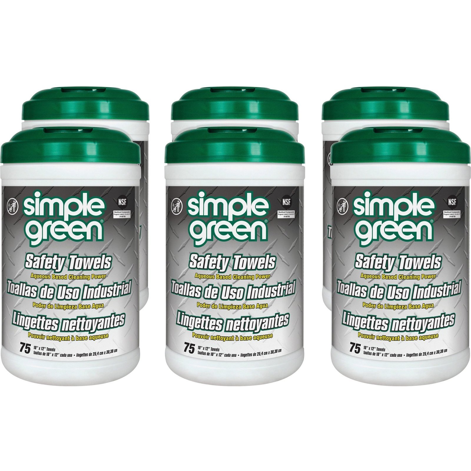 simple green Safety Towels, 1-Ply, 10 x 11.75, White, Unscented, 75/Canister, 6 Canisters/Carton (13351CT)