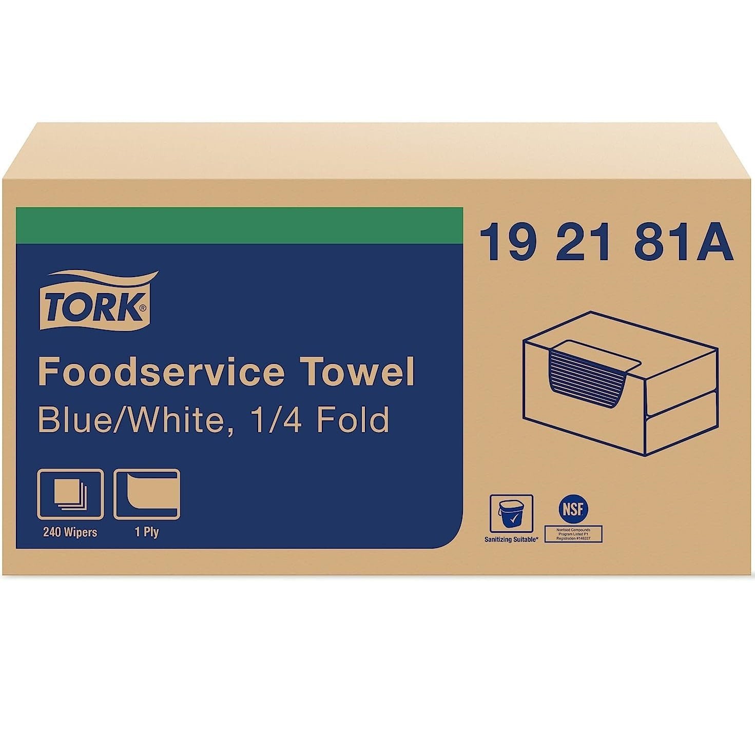 The Tork Foodservice Cleaning Towel is an excellent towel for use with quat sanitizers when the primary task is to deliver sanitizer to hard surfaces. Color-codeddesignating area of use by color is a foodservice best practice that eliminates the potential for cross-contamination. Easy to rinse, dries quickly and is low linting. Good absorption will allow cloth to pick up dirt and mop up spills effectively. The product comes in a sturdy, easy to store self-dispensing corrugated box. Antimicrobial cloths inhibit growth of odor-causing microorganisms on the product surface. Towel/Wipe Type: Foodservice Towels; Application: Cleaning; Applicable Material: Multiple; Material(s): Cloth.