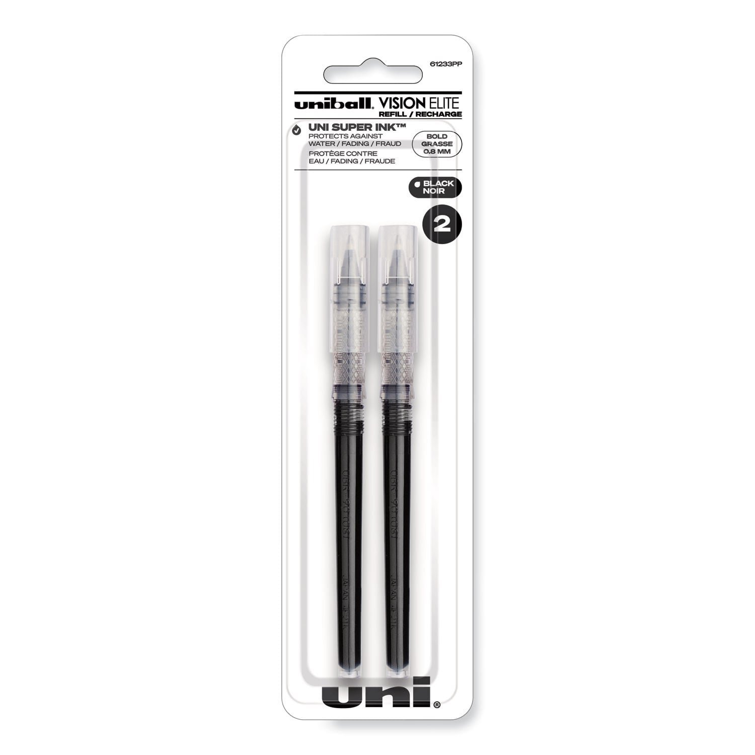 uni-ball Refill for Vision Elite Roller Ball Pens, Bold Conical Tip, Black Ink, 2/Pack (61233PP)