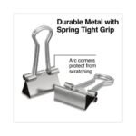 Ultra-efficient binder clips feature handles that can be hung, folded flat against clipped material, or removed for permanent binding. Efficient triangular design provides optimum strength and compression. With Storage Tub. Clip/Clamp Type: Binder Clips; Clip/Clamp Trade Size: Small; Clip/Clamp Material(s): Metal; Steel Wire; Clip/Clamp Color(s): Silver.