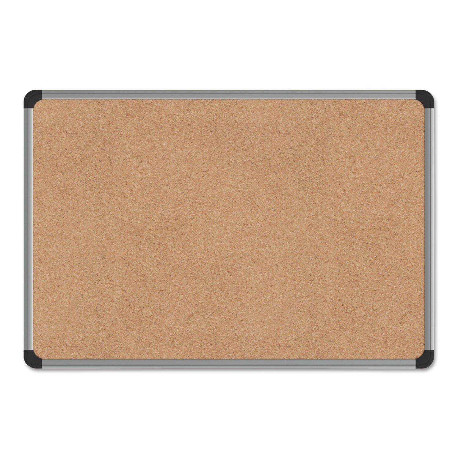 Resilient natural cork is self-healing for long-lasting performance. Dense fiberboard backing adds durability. Smooth aluminum frame with black-plastic corner accents. Mounts vertically or horizontally. Board Type: Bulletin; Board Width: 24″; Board Height: 18″; Surface Material: Cork.