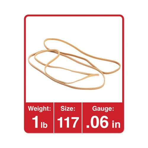 Universal Rubber Bands, Size 117, 0.06″ Gauge, Beige, 1 lb Box, 210/Pack