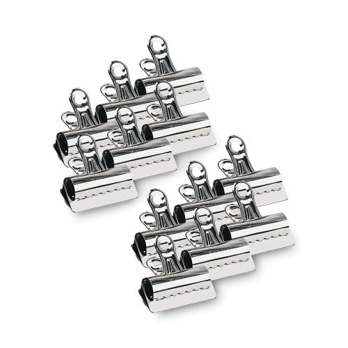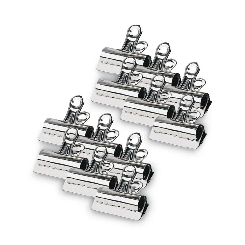 Organize and secure documents at home or in the office with Bulldog Clips. Made from lightweight and durable metal, these paper clips are a simple and efficient tool for securing important documents, storing photos in one place, or keeping coupons together. These Bulldog Clips have strong springs for solid holding power, and their classic construction has proven effective for decades Clip/Clamp Type: Bulldog Clips; Clip/Clamp Trade Size: Jumbo; Clip/Clamp Material(s): Nickel-Plated Steel; Clip/Clamp Color(s): Nickel.