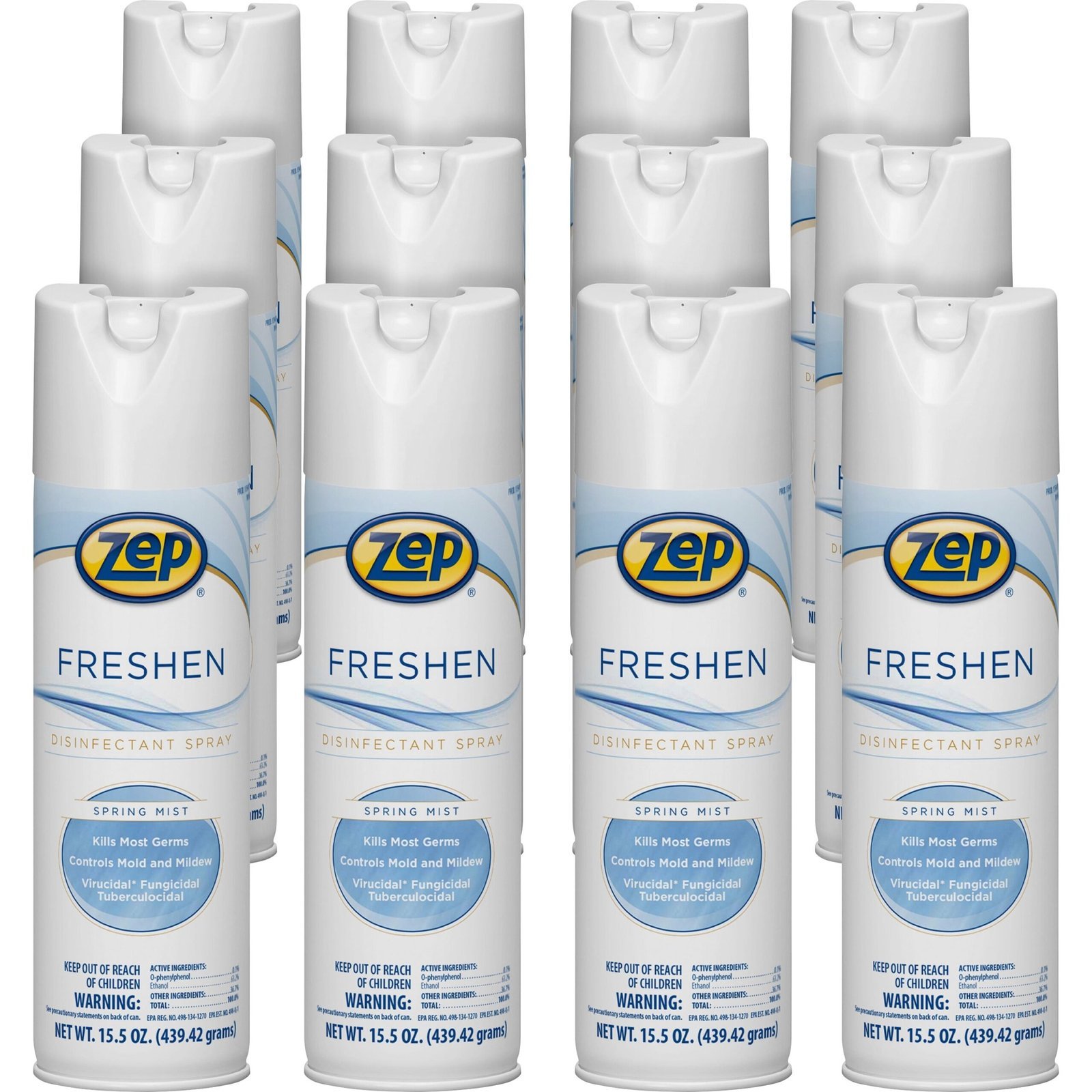 Zep Freshen Disinfectant Spray 15.5 fl oz (0.5 quart) – Spring Mist Scent – 12 / Carton – Non-porous, Virucidal, Tuberculocide, Fungicide – Clear (1050017)